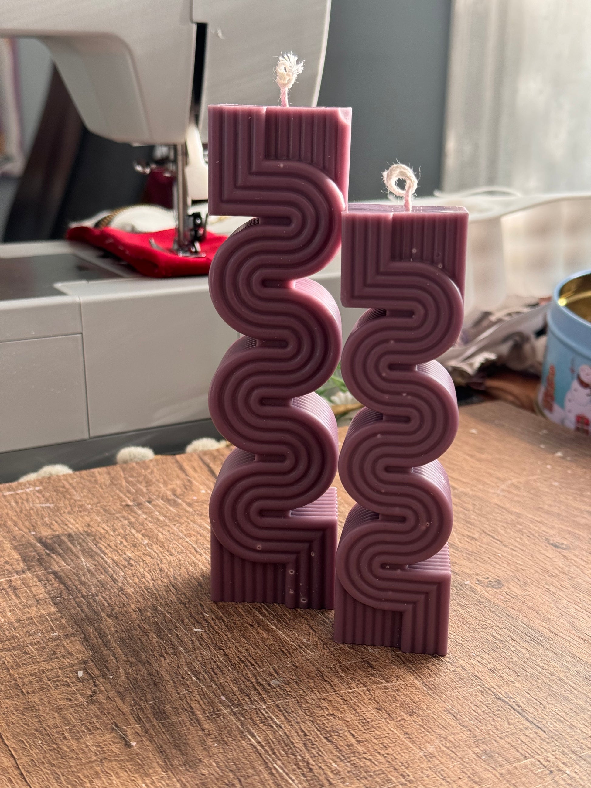 Labyrinth Ribbed Handmade Pillar Soy Candle ( Unscented )