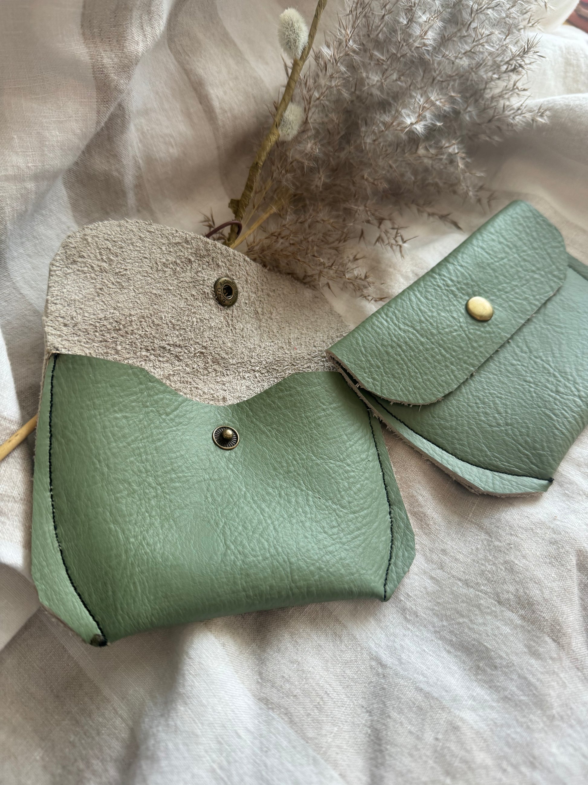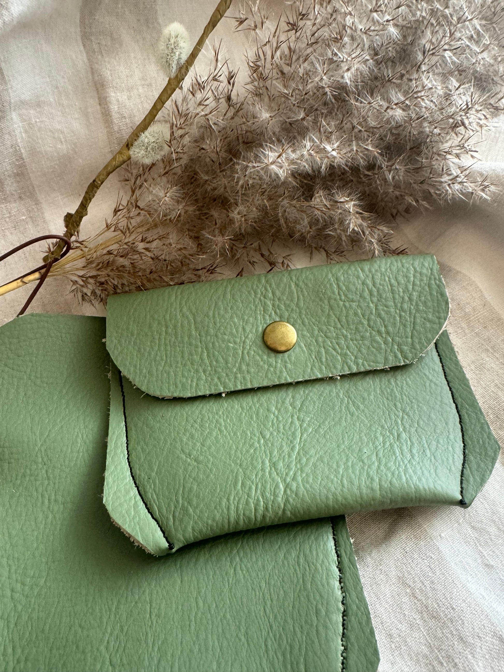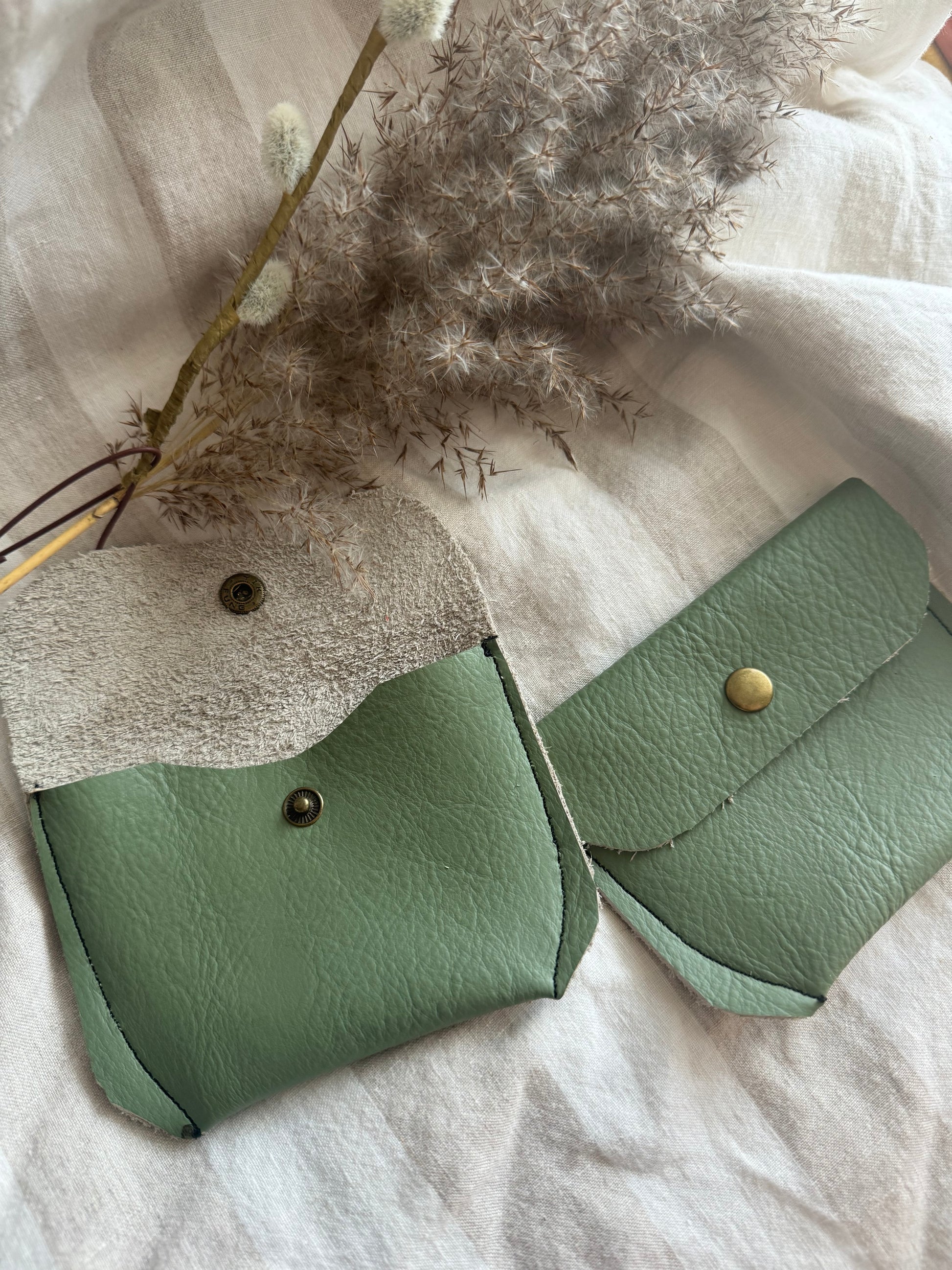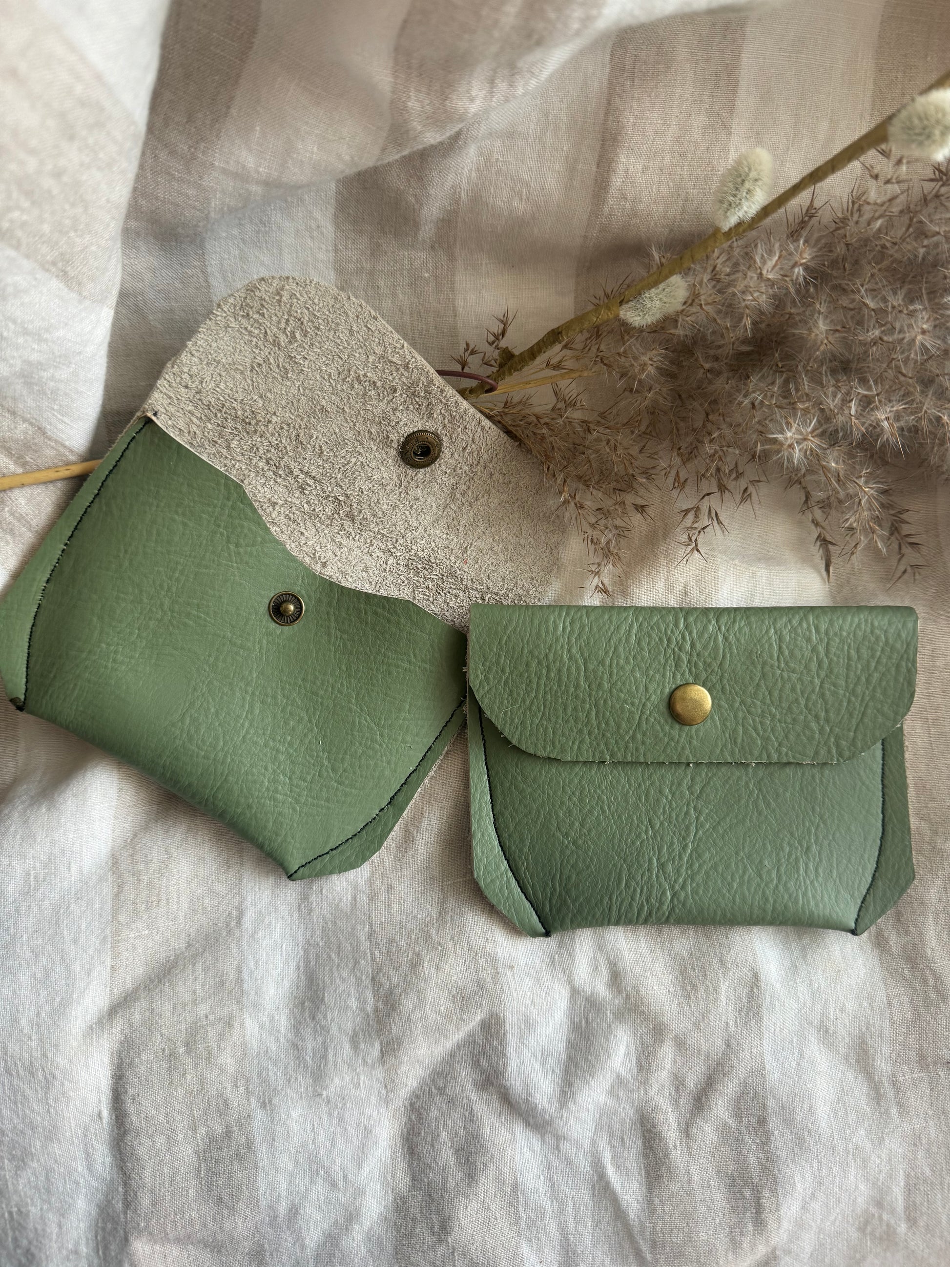 Annabelle Handmade Reclaimed Leather Coin Purse Sage Green