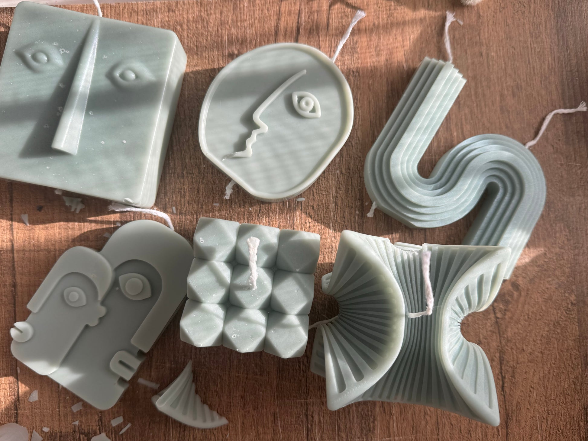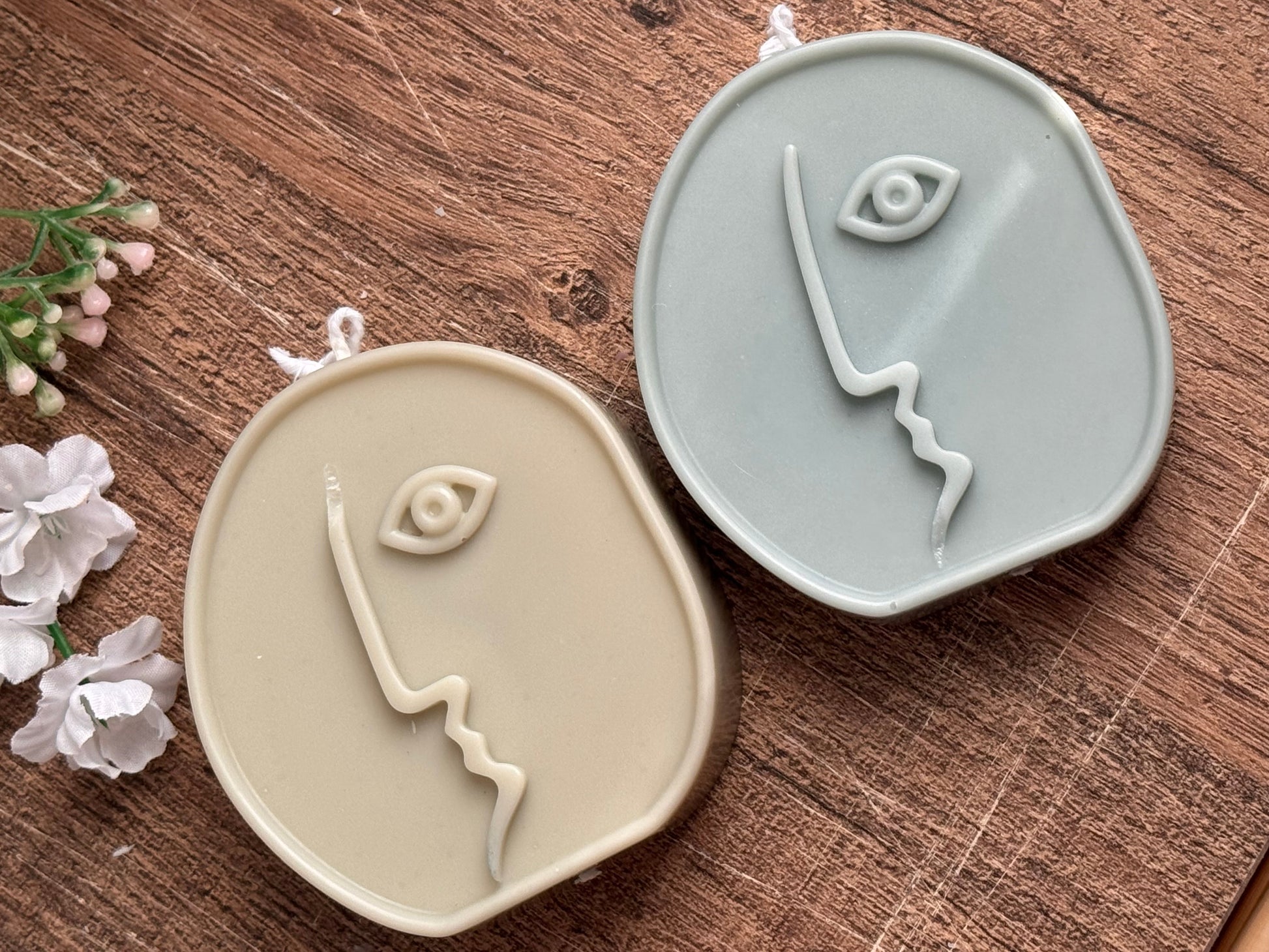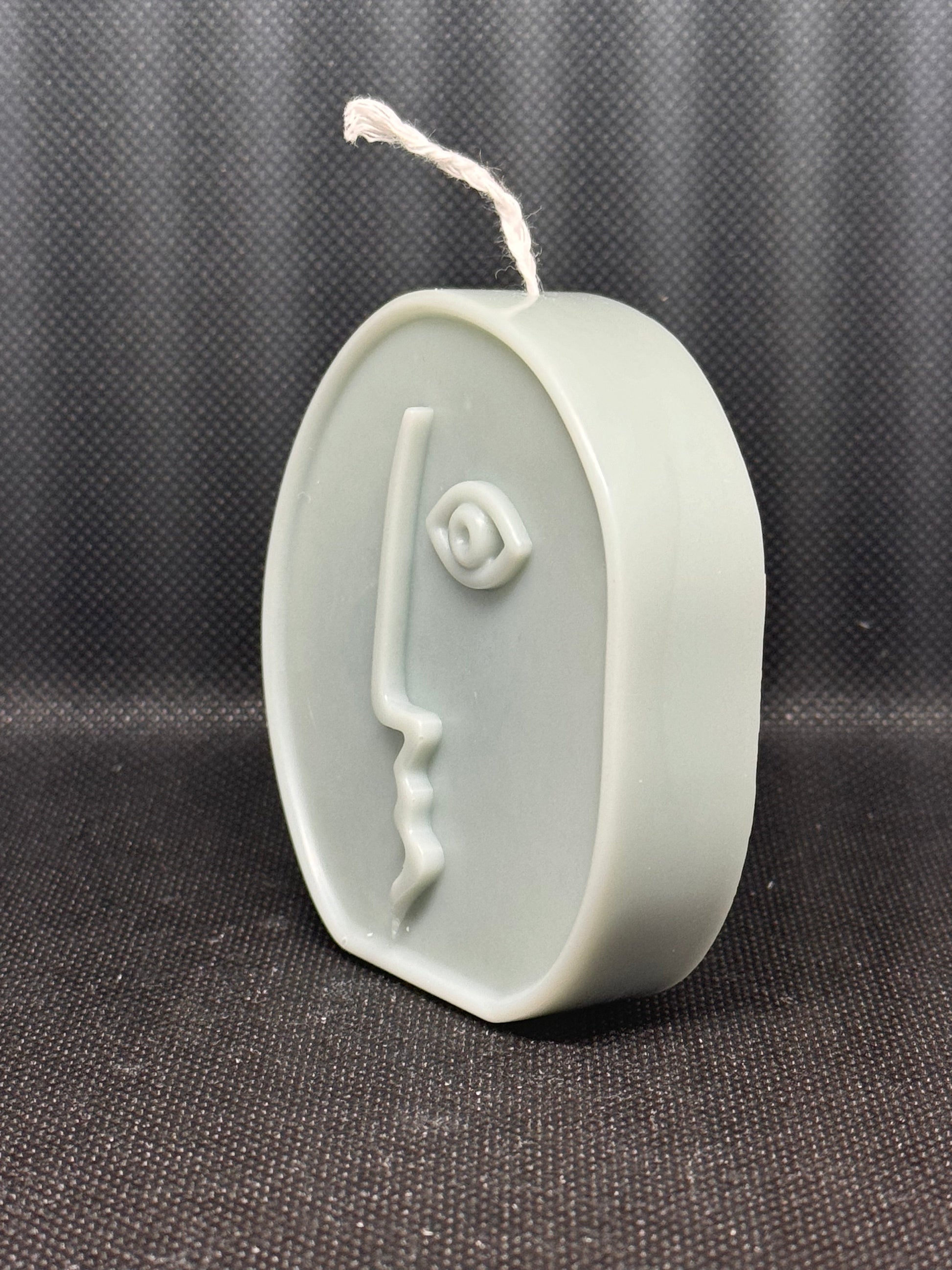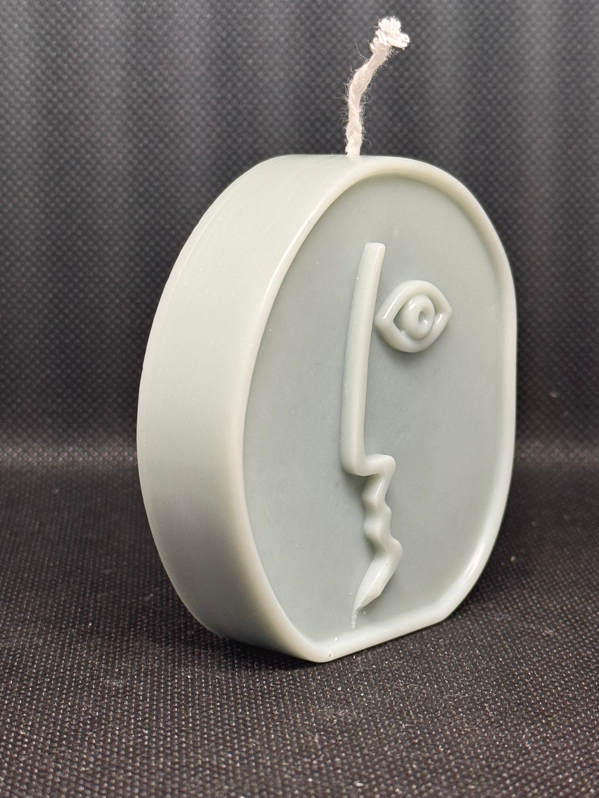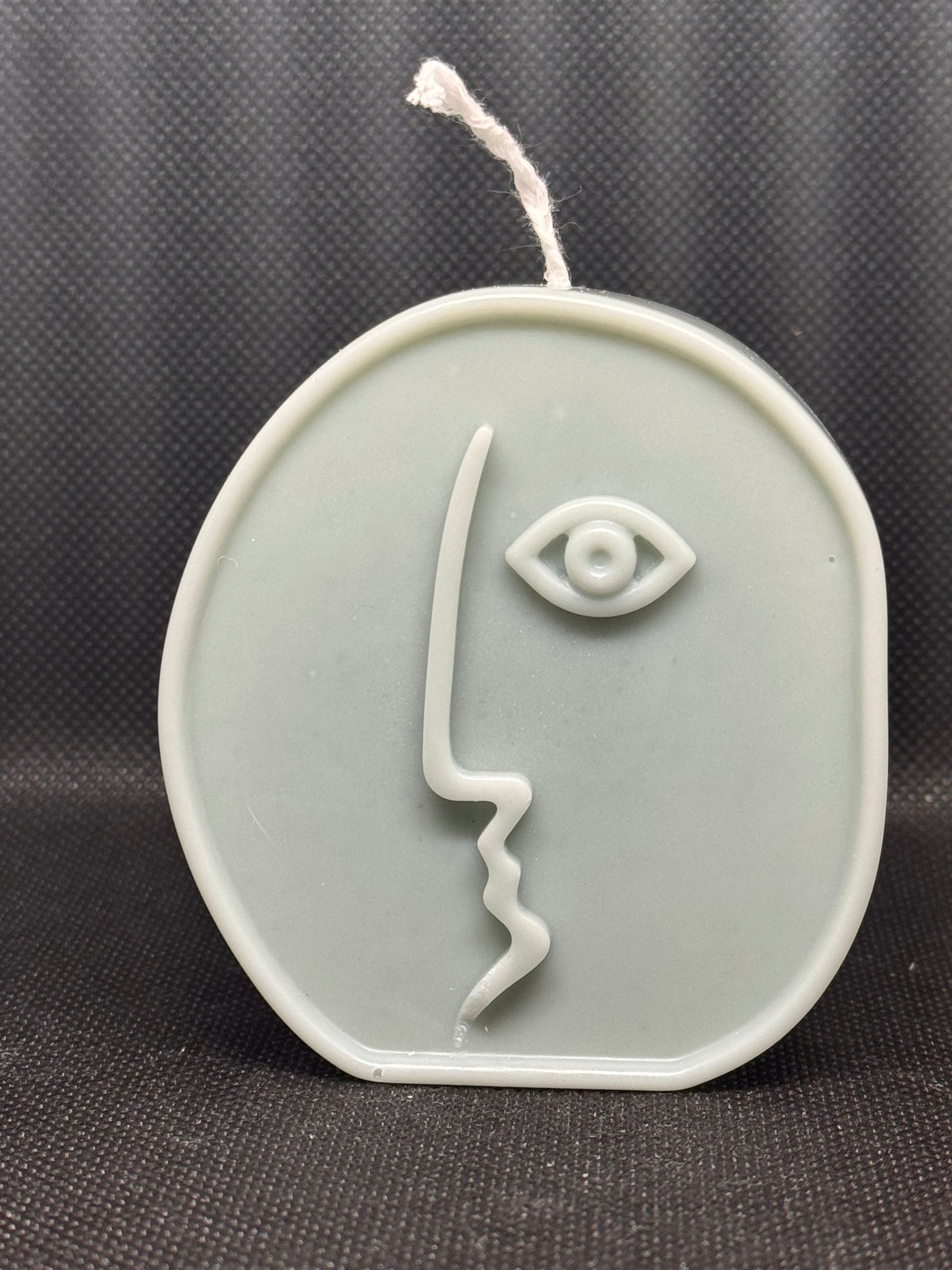 Dora Maar Abstract Face Handmade Pillar Jasmine Scented Light Grey Soy Candle