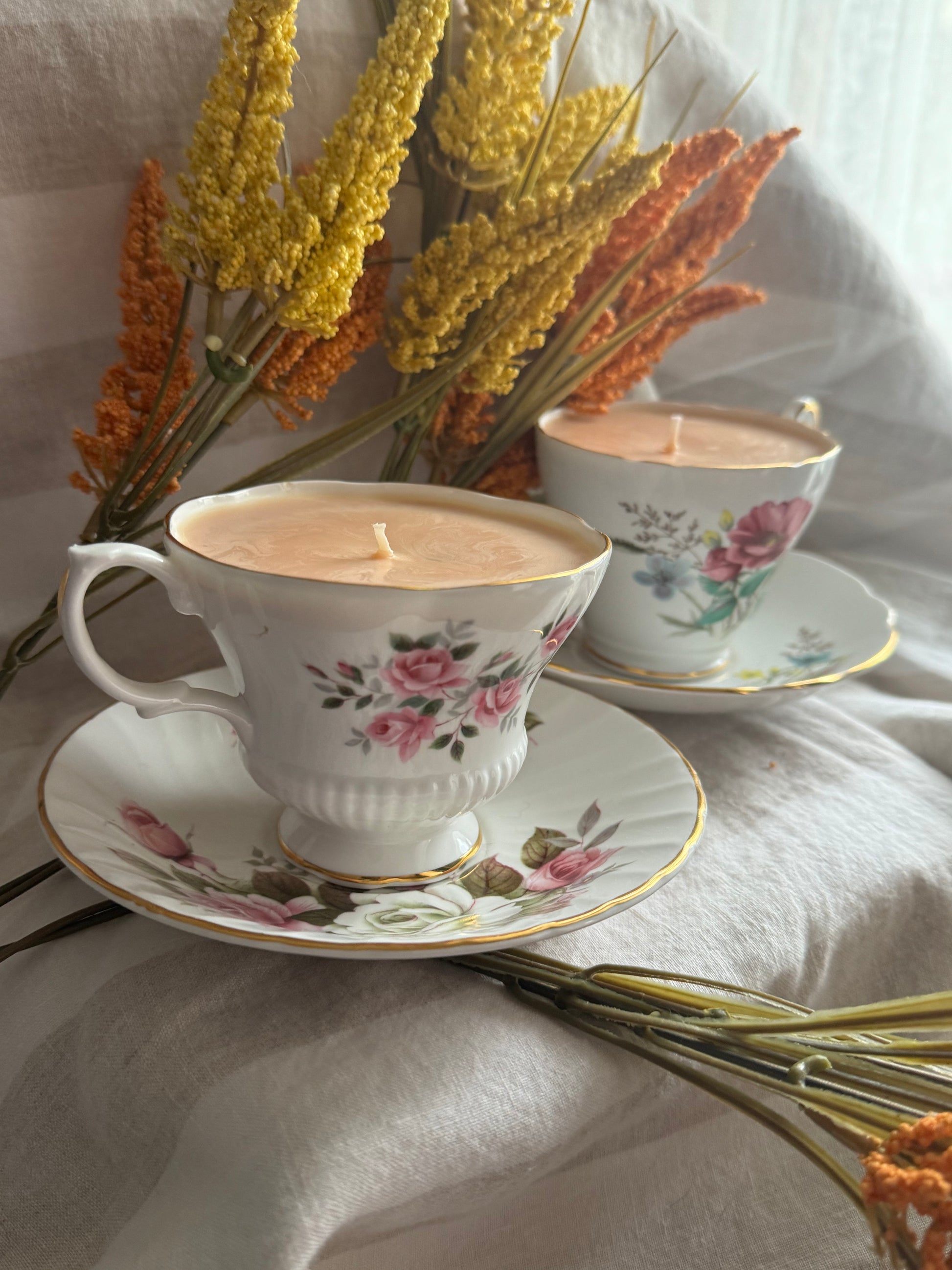 Paisley Handmade Banana Bread Scented Soy Candle in Teacup