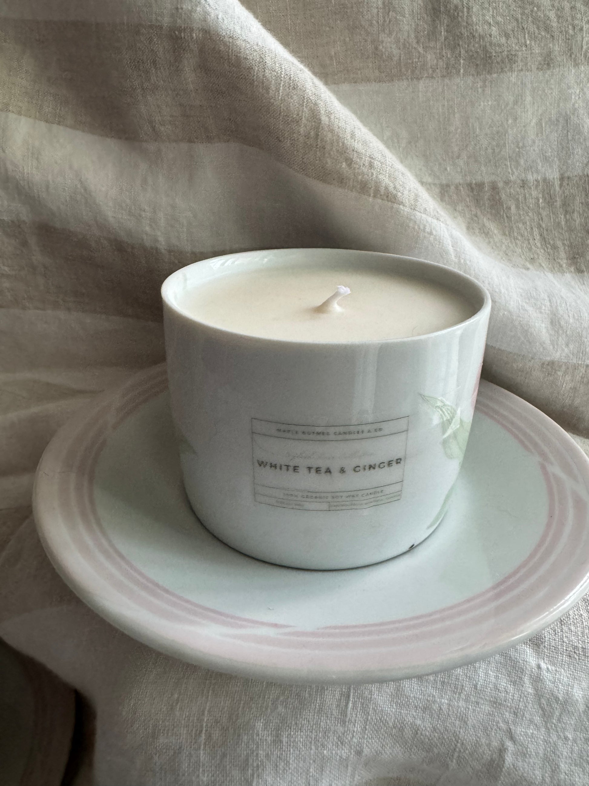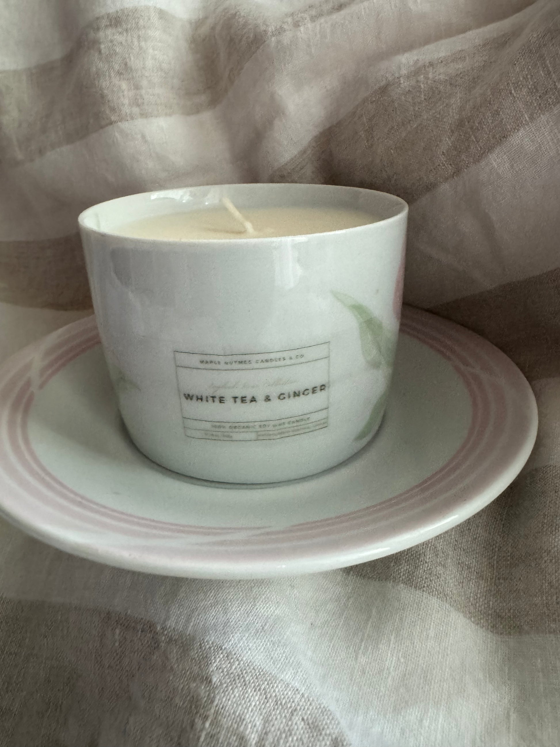 Pennie Handmade White Tea & Ginger Scented Soy Candle in Teacup