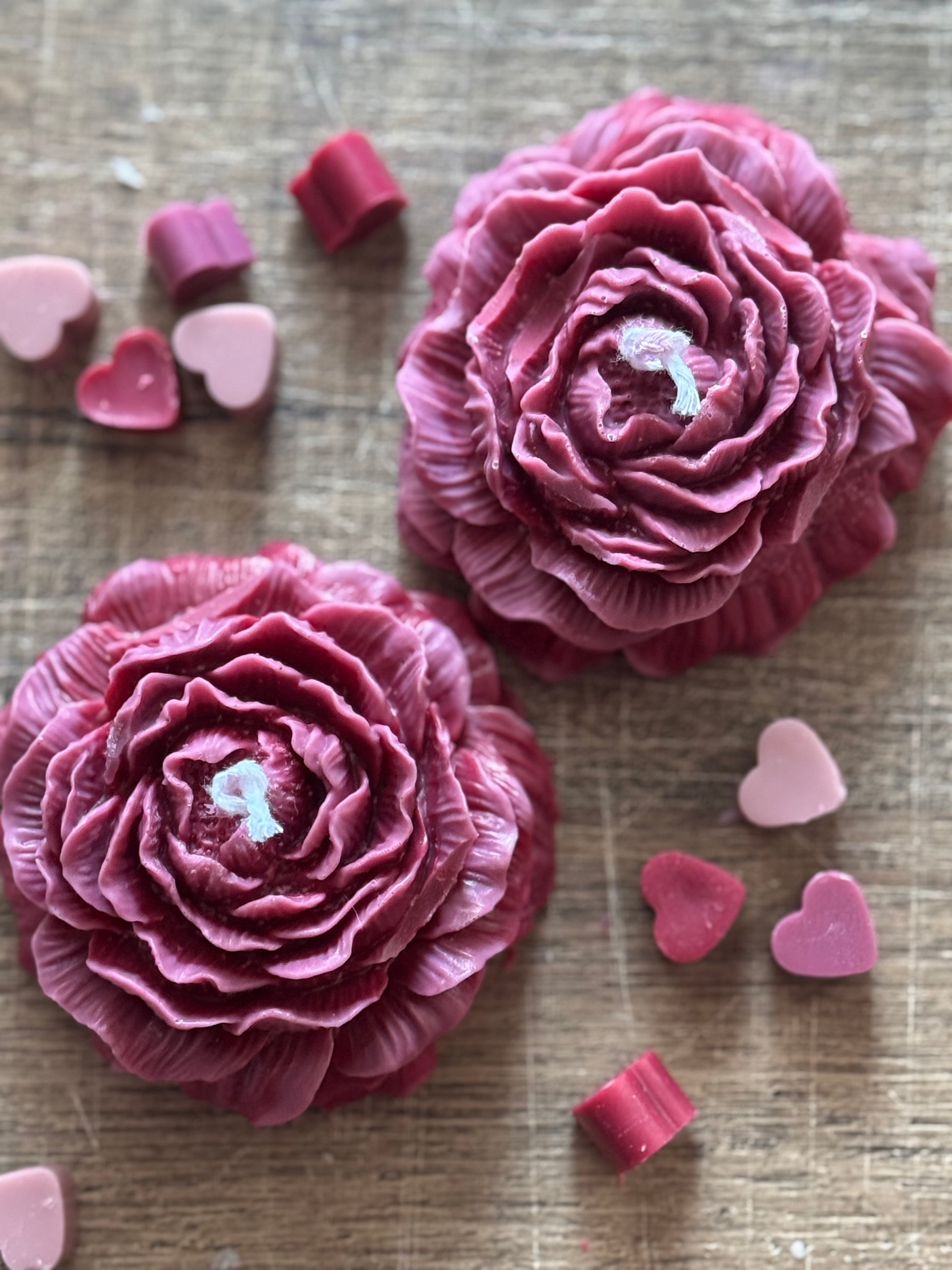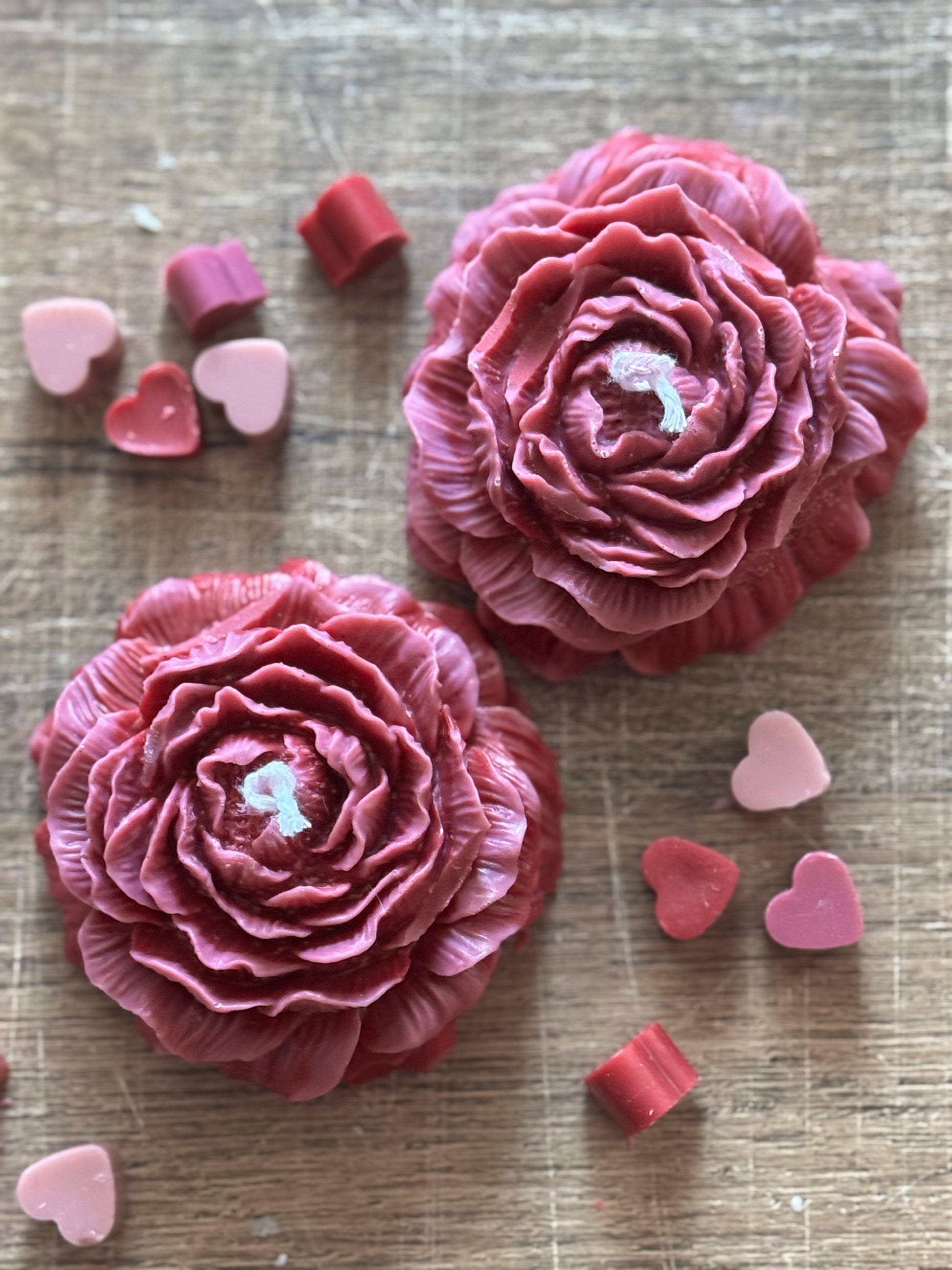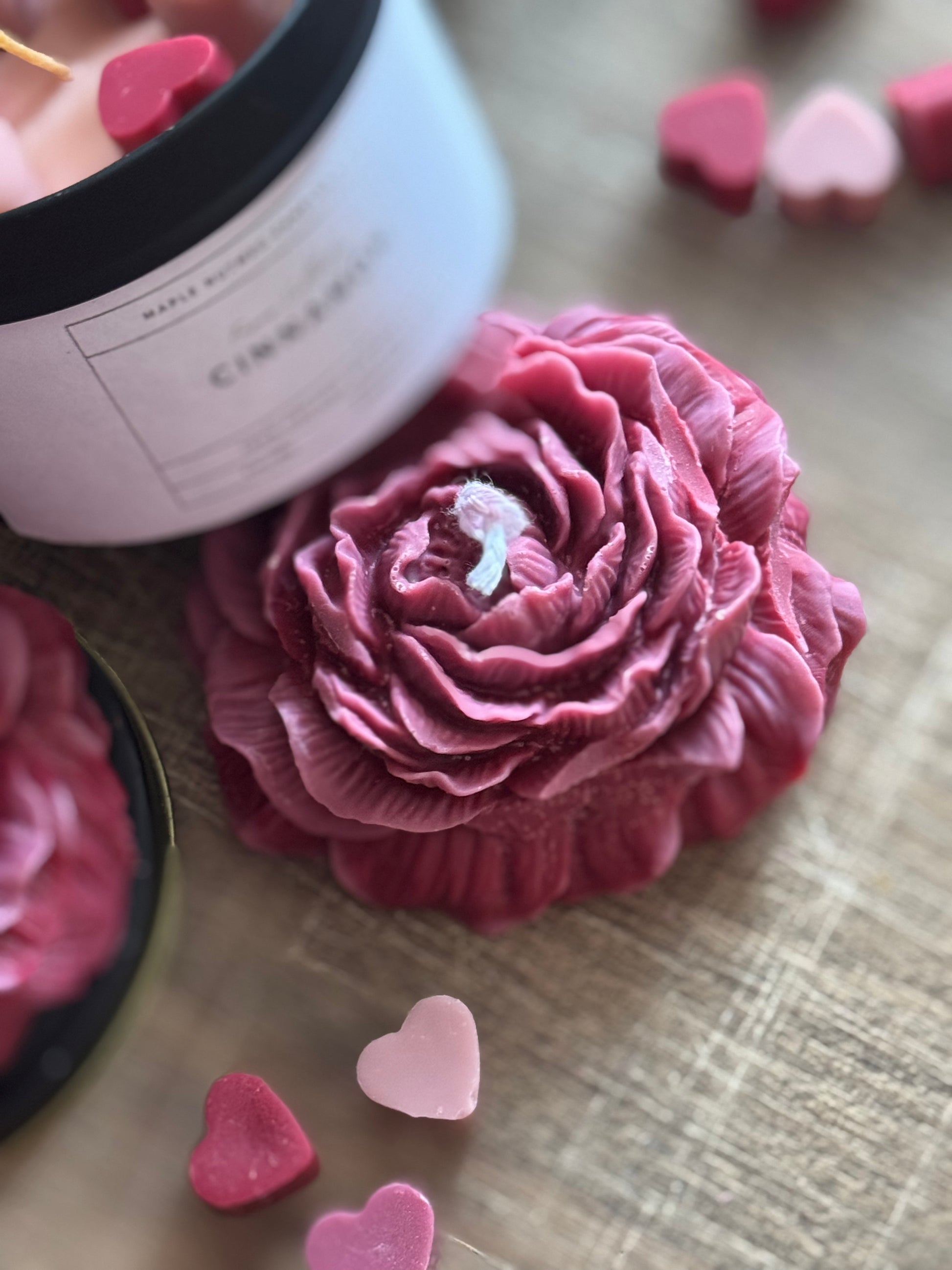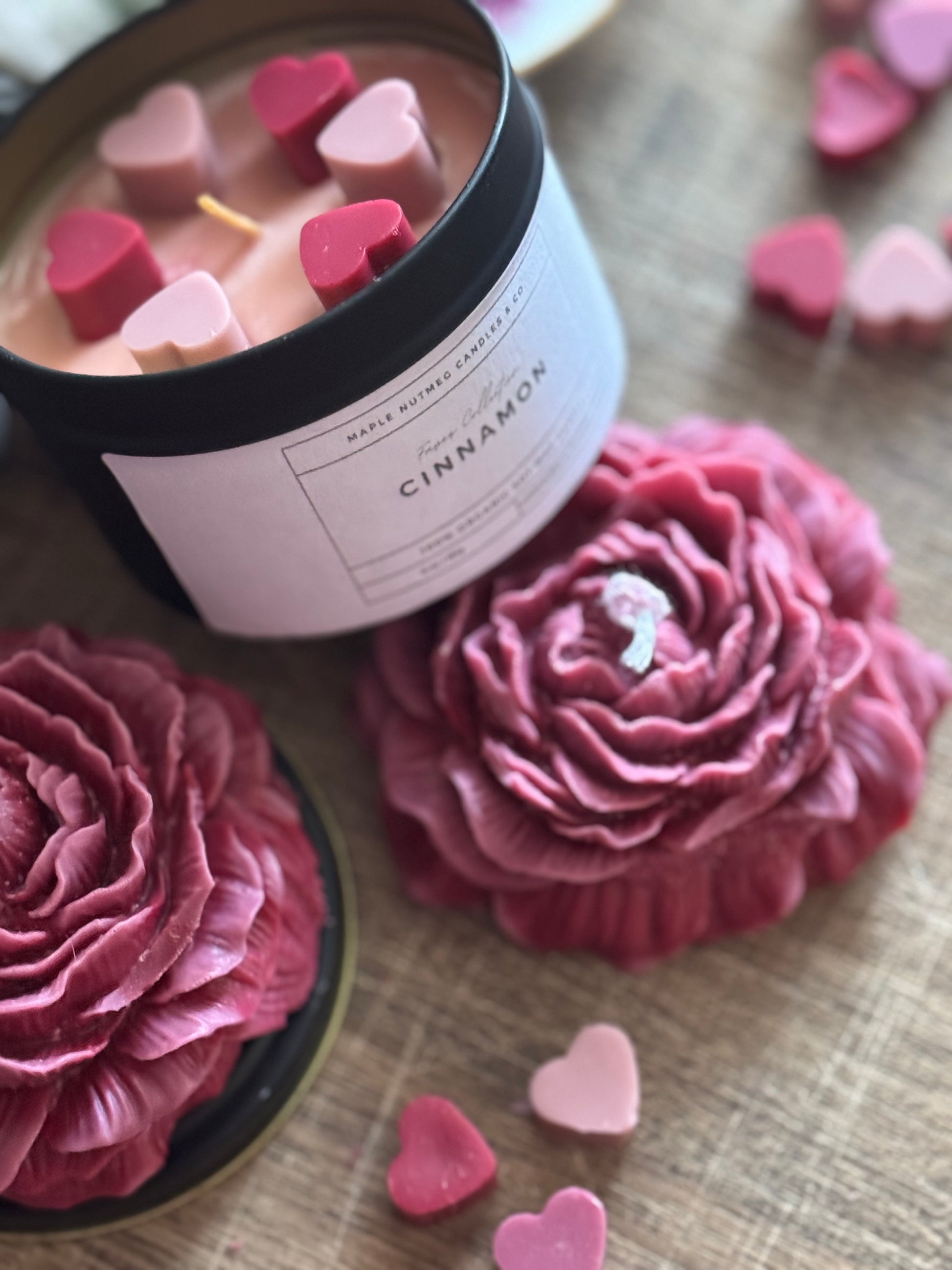 Peony Handmade Floral Soy Candle Red Pink Ombré Burgundy Cinnamon Scented