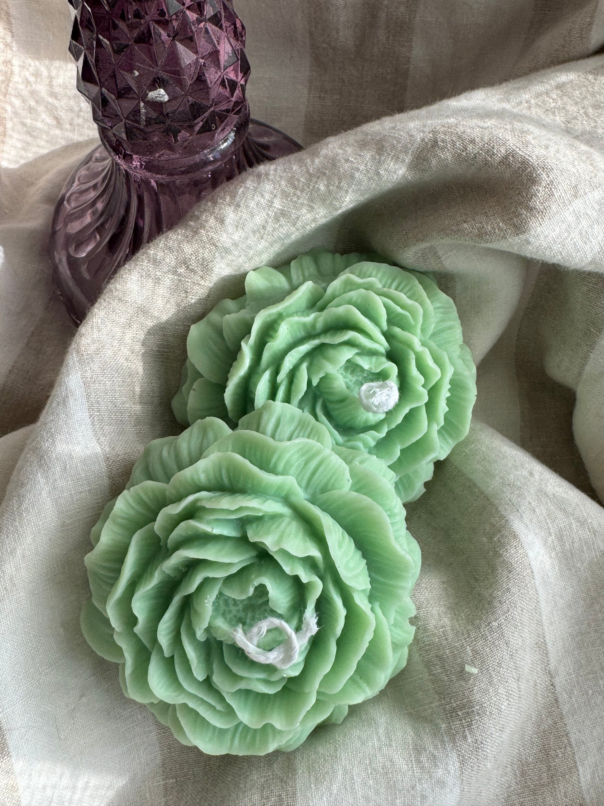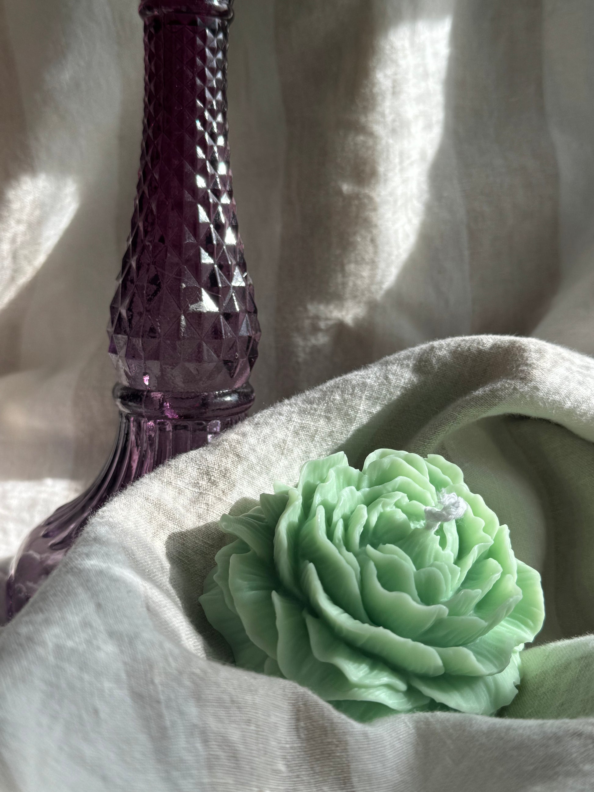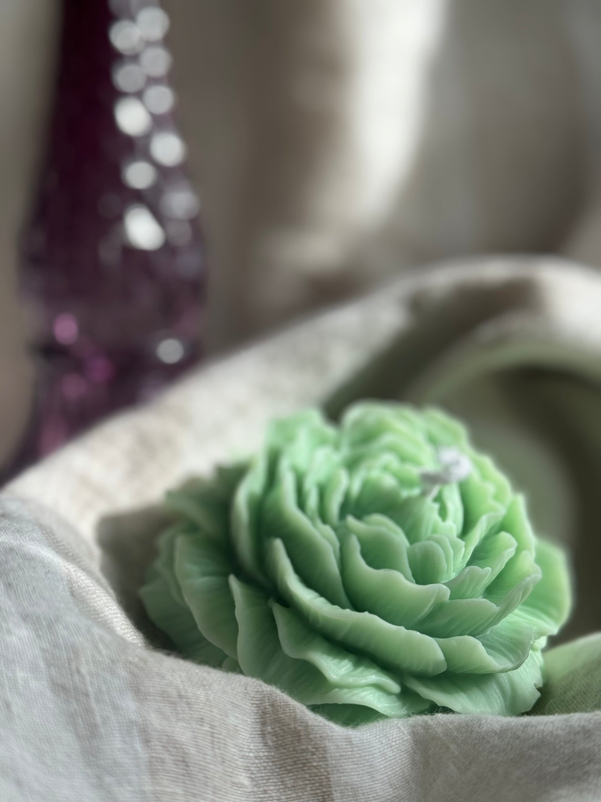 Peony Handmade Floral Soy Candle Light Green Eucalyptus Mint Scent