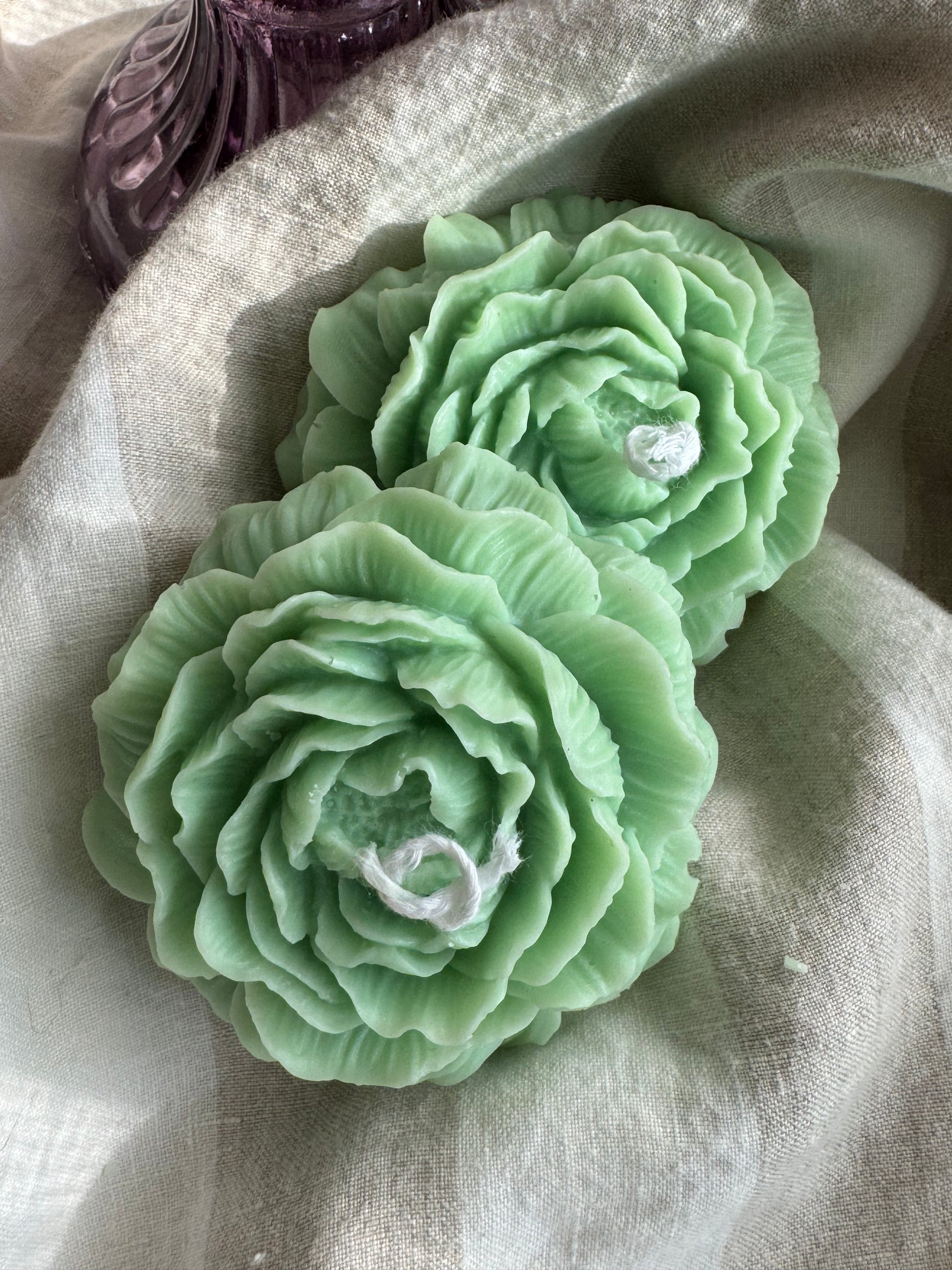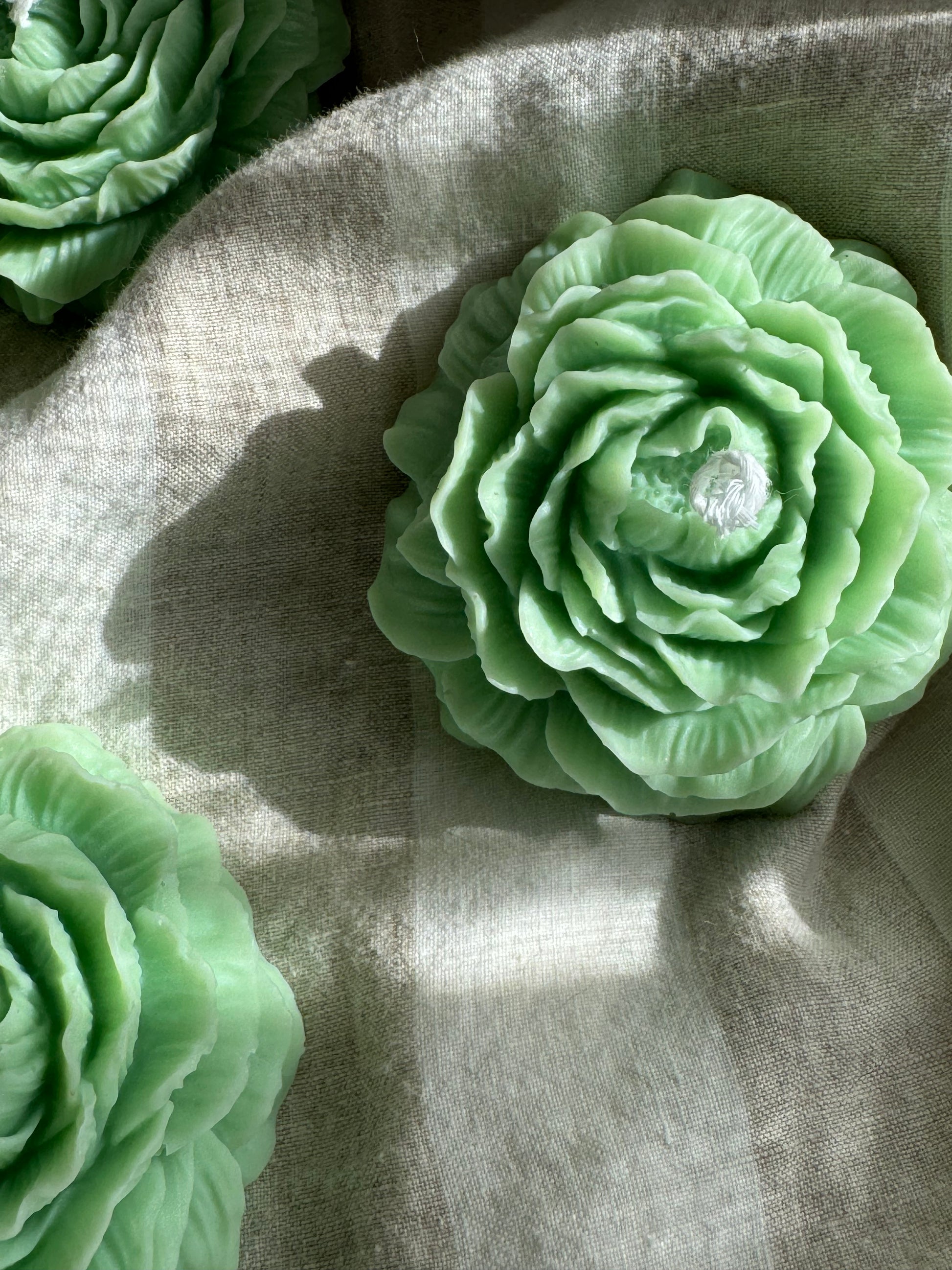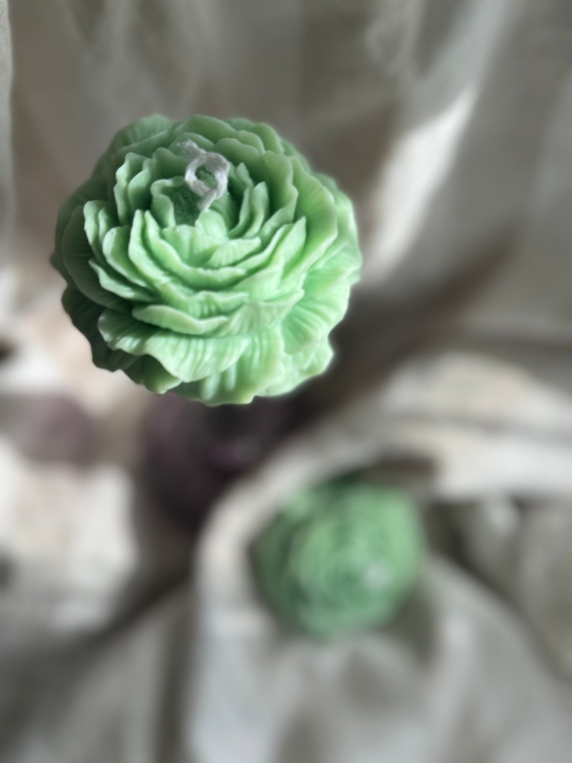 Peony Handmade Floral Soy Candle Light Green Eucalyptus Mint Scent